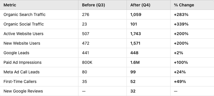 - Multiple ad campaigns drove high-quality calls, reinforcing brand trust.