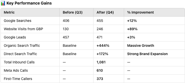High-impact advertising generated 1,081 inbound calls across Google & Meta